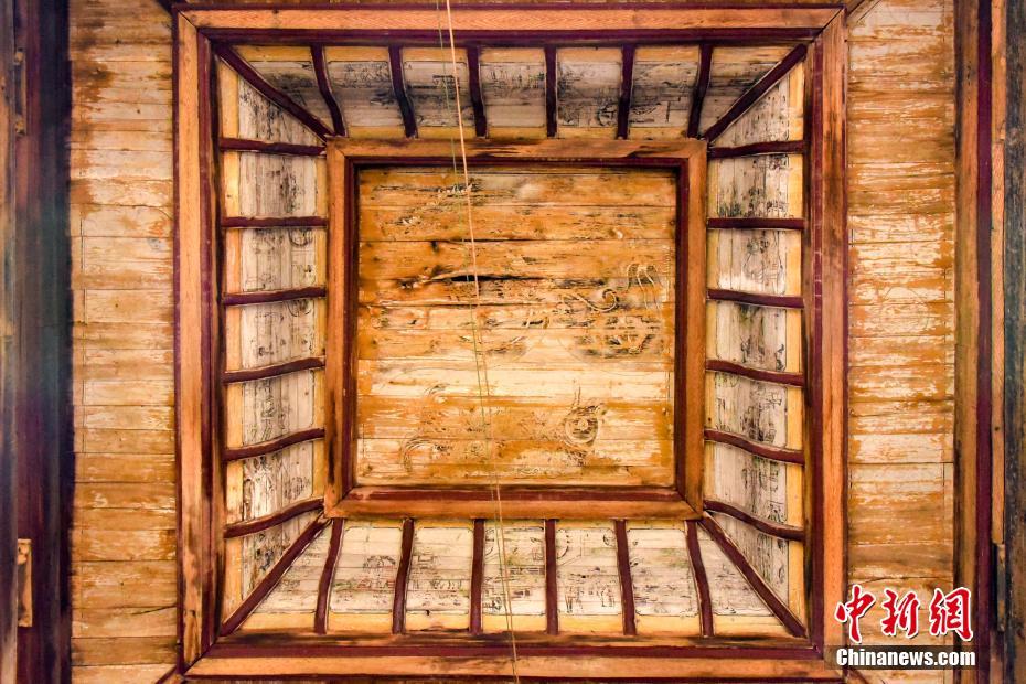 12月1日,江西省遂川縣禾源鎮(zhèn)三溪村一吳氏祠堂,尚存的古字畫,清晰可見,不失其精美。中新社發(fā) 肖遠泮 攝 圖片來源:CNSPHOTO
