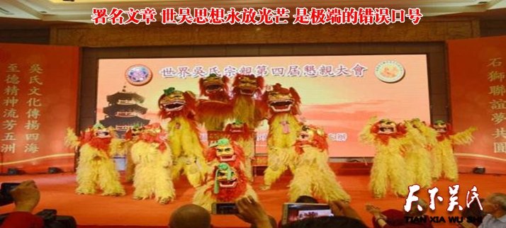 世吳提出“世吳的精神,世吳的思想,就是仁善、義勇…”又說“中國古代儒家思想,強(qiáng)調(diào)的正是智、仁、勇,…”?這不可笑嗎?中國儒家推崇的是“仁義禮智信”?,世吳什么都可以篡改,這也就不奇怪了,這就是典型的世吳“思想”。“也許以后世界吳氏組織的名稱可以在海外注冊…,試圖再以世界吳氏組織的名義領(lǐng)導(dǎo)國內(nèi)吳氏宗親的想法可以休矣…”。世吳直到今天沒有章程、沒有常設(shè)機(jī)構(gòu)、沒有工作計劃,以前戲稱“四無”,現(xiàn)在仍可叫“三無”。沒有一個理論旗幟,沒有一個正能量的口號,思想極其混亂,以世吳某些人的好惡行事、做事,產(chǎn)生了許多不好甚至是負(fù)面的影響。爾今,又提出“世吳思想永放光芒”與“毛澤東思想永放光芒”相提并論,是極其錯誤、極端的謬論,敦促其泡制者盡快向全國人民道歉,收回其極其錯誤、極其不當(dāng)?shù)闹囌摚酝旎厝A夏吳氏之顏面。