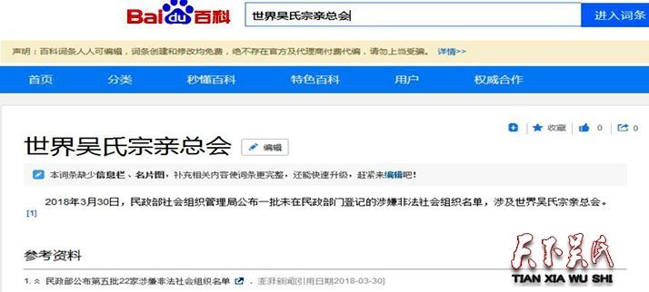 2018年3月,中國民政部公布第五批“涉嫌非法組織名單”,世界吳氏宗親總會赫然在列。從第1-5屆馬來西亞、香港、菲律賓延陵、福建石獅、馬來西亞的世吳大會,都一直是以非法組織開展活動,且不說有什么風(fēng)險,更重要的是世吳幾屆主席單位漠視政策,不尊重本國與他國的法律法規(guī),不畏懼法網(wǎng),不尊守紀(jì)律。世吳的愛國、愛民、愛宗親不是一句空話?這種行徑何談泰伯精神?這是世吳思想特征之四。