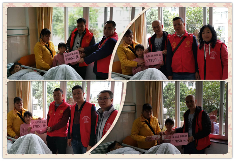 江門市東紅村三組低保戶吳超波兄弟于2018年12月26號早上突然暈在地上,經(jīng)送往五邑中醫(yī)院檢查后進入NICU重癥房,急需要資金幫助;江門禮樂吳氏(竹野公)宗親聯(lián)誼會獲知情況后,立即召開各會長和理事會會議,同意從聯(lián)誼會基金中資助1000元給低保戶吳超波宗親;中山市吳氏竹野公聯(lián)誼會知道情況后也捐款1000元給低保戶吳超波宗親;在江門禮樂吳氏(竹野公)宗親聯(lián)誼會、廣東珠三角吳氏宗親會、泰伯基金會、中山市吳氏竹野公聯(lián)誼會主要領(lǐng)導(dǎo)吳鎮(zhèn)添、吳占標(biāo)、吳志剛、吳昌祿、吳國標(biāo)等宗長的牽頭下,在廣東珠三角吳氏宗親會常務(wù)副會長吳鎮(zhèn)添、吳占標(biāo)的親自組織發(fā)動下,宗親們伸出愛心之手,紛紛捐款,幾天時間就捐款17850元。(撰稿吳昌祿)