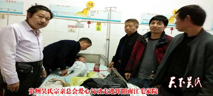 貴州省吳氏宗親總會(huì)開陽縣吳氏分會(huì)吳天友悉知這個(gè)情況后,立即上報(bào)了省總會(huì),經(jīng)過討論,由吳天友,吳肇俊,吳文杰,吳文勇,吳天立等馬上成立了愛心小組,將愛心倡議書面向各地吳氏宗親會(huì),希望一方有難,八方支援的團(tuán)隊(duì)精神再一次的發(fā)揚(yáng)光大,讓祖國的花朵不再枯萎,早日迎來朝霞的曙光。