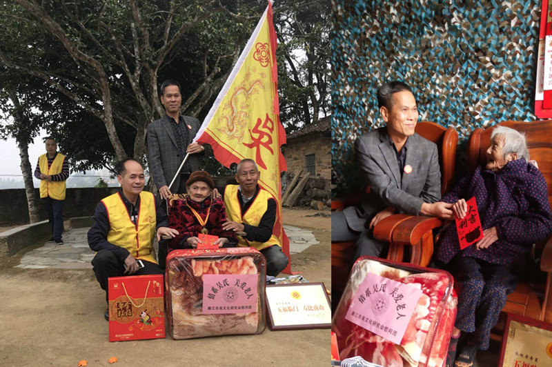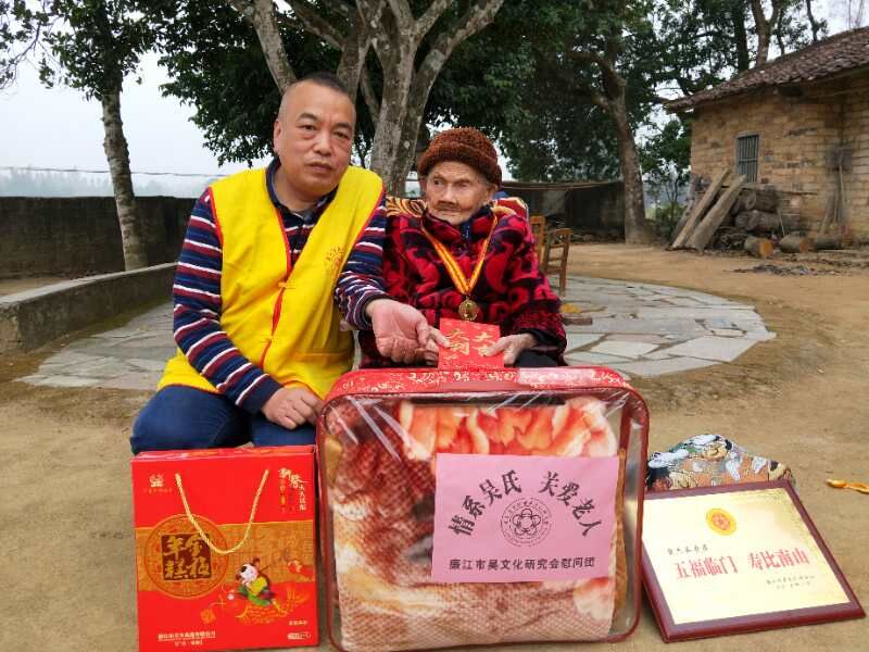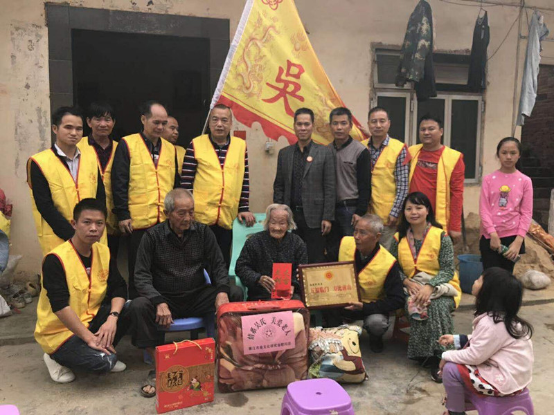 當天,廉江吳文化研究會的另一組成員還趕赴和寮、河唇等鎮(zhèn)慰問了四位老壽星。這次活動共慰問七個老壽星,每慰問一個老壽星都為他們送上慰問金和毛氈、保暖衣服、年糕等慰問品。此次,吳文化研究會發(fā)起眾多宗親捐錢捐物,有力出力,并走訪看望老宗親,展現(xiàn)廉江吳文化優(yōu)良傳承,教育后輩,學(xué)會做人,目中有人,心中有愛,口中有德,尊老敬老。