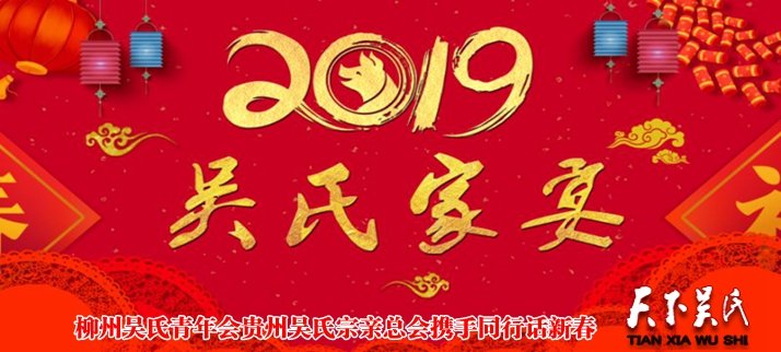 “喜聞?wù)谂e行《2019柳州吳氏青年會(huì)*吳家宴》,宗親們歡聚一堂,歡聲笑語(yǔ),宗誼洋溢,貴州省吳氏宗親總會(huì)特致電表示熱烈的祝賀!向柳州的吳氏宗親們及家人致以親切的問候和最美好的新年祝福!在這里向大家拜個(gè)早年!祝家人們2019年新春吉祥,萬(wàn)事如意!