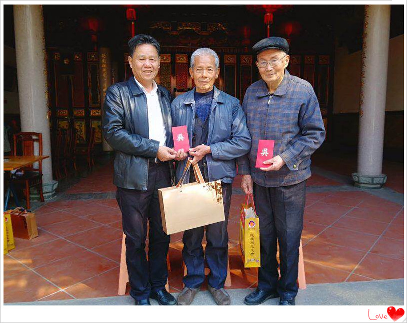 昨天廈門吳氏漾公洐派宗親會吳興安、吳火生、吳意忠、吳寶才、吳棋南、吳萬年一行,赴梧村、埭頭、西潘、穆厝,翔安內(nèi)垵、同安西山,慰問看望了這幾個社里的德高望重的老顧問吳天意、吳三民、吳斗興、吳建德、吳錫禧、吳福民送去吳氏宗親的宗情問候和祝福。走到各地都受到眾宗親的熱情歡迎。老顧問們表示感謝會長及各宗親的慰問關(guān)心,表示愿為吳氏家族的興旺奉獻余熱。前天在翔安霞浯村看望了吳榮旭、吳金寶、吳尊敬、吳清速、吳漢彬等宗賢,今天看望了吳世澤、吳昭明等宗長。