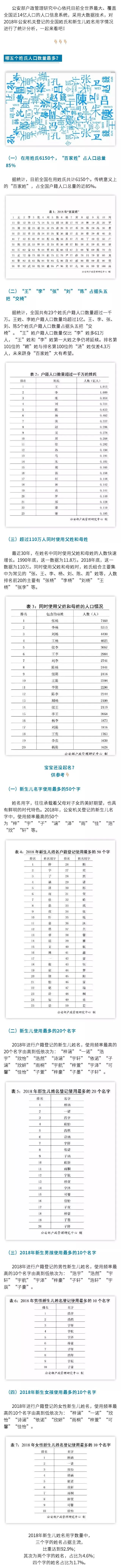 姓名文化源遠流長,是中華文化的重要組成部分,歷來受到人民群眾的高度關(guān)注。姓名也是最重要的戶口登記項目,對公民身份的確認(rèn)至關(guān)重要。對全國人口的姓氏和姓名用字情況進行統(tǒng)計分析,對于規(guī)范姓名登記、了解姓氏文化變遷具有重要意義。