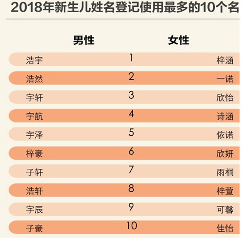 2018年,近93%的新生兒被賦予了三個(gè)字的姓名。和從前的淑蘭、淑珍、淑琴們一樣,浩然、浩宇、浩軒們正努力長大為這個(gè)時(shí)代留下注腳。