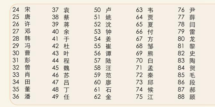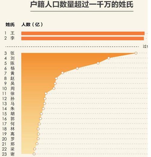 百家姓新說:“王李張劉”和浩然浩宇浩軒們 和古代傳統(tǒng)百家姓“趙錢孫李”不同,在公安部戶政管理研究中心最新出爐的百家姓排行榜里,“王李張劉“以人丁之興旺成為前四大姓氏。在全國6150個(gè)姓氏里,“百家姓”就占全國戶籍人口總量的近85%。