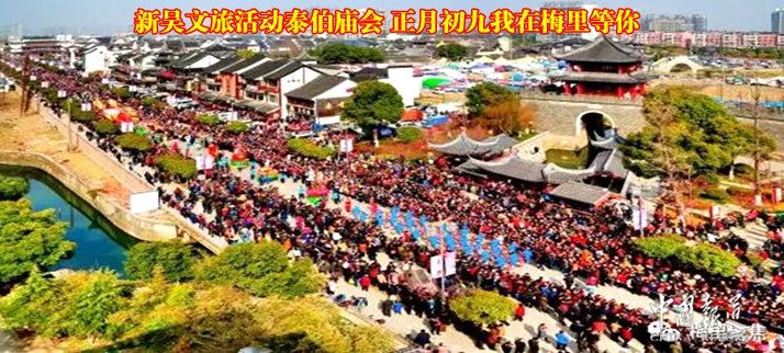 “江南源 吳歌里 春在梅里”2019泰伯廟會新聞發(fā)布介紹,梅村素有“江南第一古鎮(zhèn)”的美譽,是吳文化的發(fā)祥地。每年正月初九,江南吳地人民都要為紀(jì)念祖先泰伯而舉辦盛大的“泰伯廟會”。自2003年起,梅村人民在傳統(tǒng)泰伯廟會的基礎(chǔ)上,融現(xiàn)代手法于傳統(tǒng)習(xí)俗,每年舉辦一屆泰伯文化節(jié),持續(xù)成功舉辦了第十屆泰伯文化節(jié)。