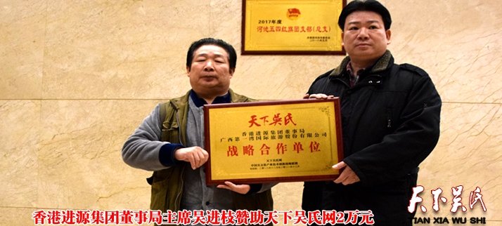 香港進(jìn)源集團(tuán)董事局主席吳進(jìn)枝贊助天下吳氏網(wǎng)2萬(wàn)元