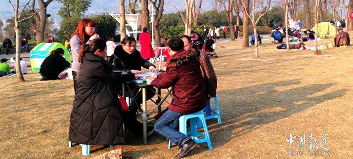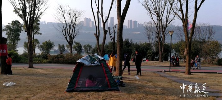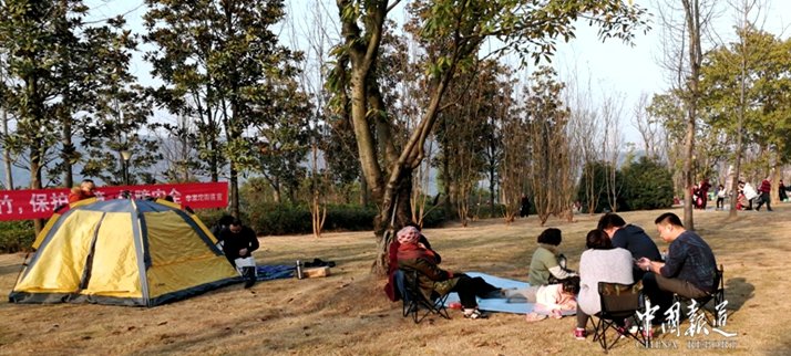 今天是正月初一,是一個春暖和熙的日子,是令人心曠神怡好日子,在重慶的巴濱路,在融匯茶花廣場,在西流沱古鎮(zhèn),在江河地帶,城里人是這樣過春節(jié)的,他們一家老小,三五成群帶上露營的帳篷,帶上麻將桌,帶上睡席地毯還有熱水壺糖果瓜子飲料等等。在這里,同樣是車水馬龍,有跌足球的,有放風(fēng)箏的,有打羽毛球的,有拍照的,幾乎樣樣盡有。城里人就是樣過年的,可謂其樂融融。