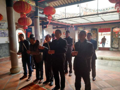 漳平下水門宗親尋根問祖團(tuán),前來廈門鰲冠吳氏家廟垂裕堂祭祖,根據(jù)族譜記載垂裕堂第九世分支到下水門安居樂業(yè),在有生之年回到家鄉(xiāng)祭拜祖宗,兩地宗親歡聚一堂。