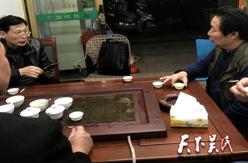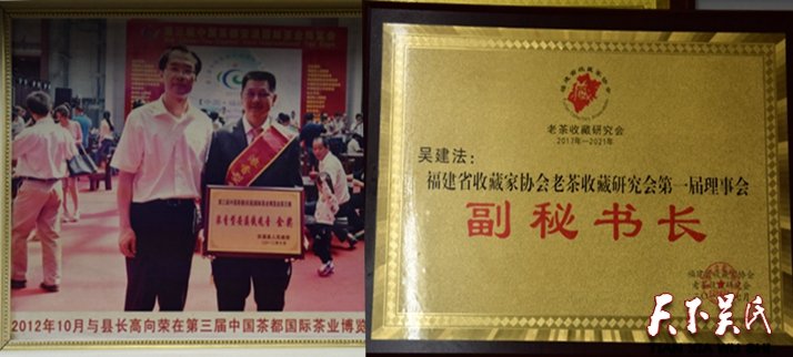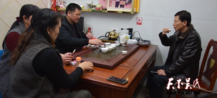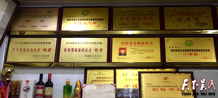 第二站是茶葉資深專家民間斗茶大師安溪縣祥華吳建法茶葉專業(yè)合作社負(fù)責(zé)人吳建法的茶鋪。琳瑯滿目的安溪鐵觀音,品味醇厚濃郁芳香的茗茶中談笑風(fēng)生,據(jù)介紹,吳建法1987年高中畢業(yè)后開始從事茶行業(yè)。三十年來,他種茶、管茶、制茶、賣茶,潛心研究制茶技藝;自2003年起,年年參加各級各類茶王大賽,屢屢奪金摘銀;首創(chuàng)“吳建法”產(chǎn)銷經(jīng)營管理模式,影響帶動當(dāng)?shù)夭柁r(nóng)發(fā)家致富奔小康。自此,吳建法一發(fā)不可收拾,從鄉(xiāng)賽到縣賽,從省內(nèi)到省外,參加各級各類茶王賽并屢屢獲獎。2008年,中國(福建)秋季鐵觀音茶王賽優(yōu)秀獎;2009年,第六屆福州安溪鐵觀音茶王賽清香型銅獎、濃香型銅獎;2012年,第三屆安溪茶業(yè)博覽會金獎茶王;2014年,廈門海峽兩岸茶王賽銅獎;2015年,在安溪烏龍茶研究會舉辦的烘焙大賽中獲得第一名和最佳人氣獎;2016年,春季安溪鐵觀音縣賽清香型銀獎;2016年安溪縣政府茶王賽陳香型鐵觀音銅獎;2016年普寧安溪茶王賽濃香型優(yōu)秀獎;……2007年,取得高級評茶師資格證書,擔(dān)任過多場茶王賽評委;曾被祥華鄉(xiāng)評為推動茶產(chǎn)業(yè)發(fā)展“功勛茶王”;2016年,被福建省茶產(chǎn)業(yè)研究會評為十佳民間評茶高手。