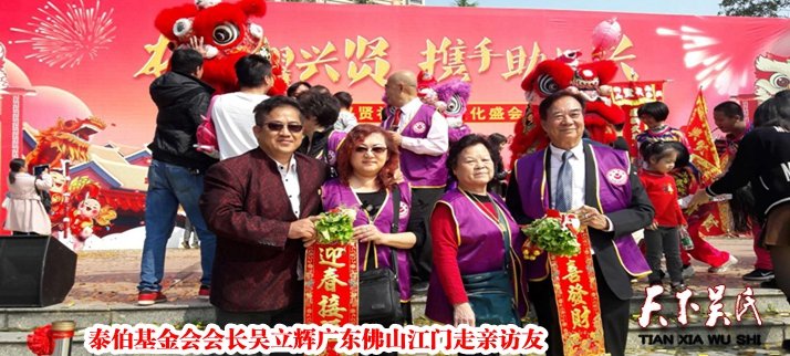 泰伯基金會這次新春走訪,行程雖然僅兩天,但收獲良多,不但加深了與佛山、江門吳氏宗親的宗誼,還了解了佛山、江門部分吳氏宗祠的歷史文化,了解了吳氏宗親發(fā)展經濟,服務吳氏宗親的情況。泰伯基金會會長吳立輝每到一處都代表泰伯基金會向當地的吳氏宗親致以新春的問候和祝福,祝福吳氏宗親新春大吉,萬事如意,身體健康,闔家幸福!