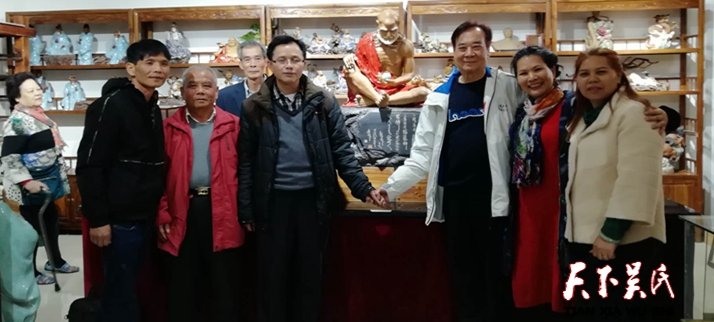 天下吳網訊(吳昌祿報道)2019年2月11日(農歷初七)上午,香港泰伯基金會會長吳立輝率領泰伯基金會常務會長吳炎逵夫妻、吳桂宣夫妻、吳錦添夫妻、吳國榮夫妻、吳錫義、吳鵬、吳建忠,常務副會長吳昌祿,永遠名譽副會長吳映如,會員吳俊廷、吳承熹、吳光輝、吳鎮(zhèn)添等來到廣東佛山市禪城區(qū)石灣陶香邨,參觀了陶香邨陶瓷藝術品、陶瓷加工廠,拜訪這里的吳氏宗親并向他們致以新春的福和問候,受到吳建忠等宗長、佛山市文獻館梁燕、廣東省陶瓷藝術大師高級工藝美術師黃志棠的熱情接待,黃志棠大師祥細地向泰伯基金會一行介紹了這里的陶瓷產品。參見完石灣陶香邨后接著佛山南海參觀了嶺南藏石家吳桃的收藏館。