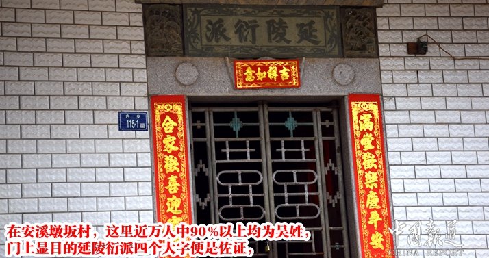 在安溪墩坂村,這里近萬(wàn)人中90%以上均為吳姓,門(mén)上顯目的延陵衍派四個(gè)大字便是佐證,家家戶(hù)戶(hù)門(mén)牌很顯目的二維碼成為最全國(guó)為數(shù)不多的景觀,只要你掃下二維碼你就會(huì)有很多收獲。幾乎家家戶(hù)戶(hù)貼春聯(lián),掛大紅燈籠,屋頂懸桂空飄條幅,放煙花放鞭炮,在海內(nèi)外、在港澳臺(tái)及他鄉(xiāng)的游子都回家與家人團(tuán)聚過(guò)年更顯“?;丶铱纯?rdquo;的親情紐帶。