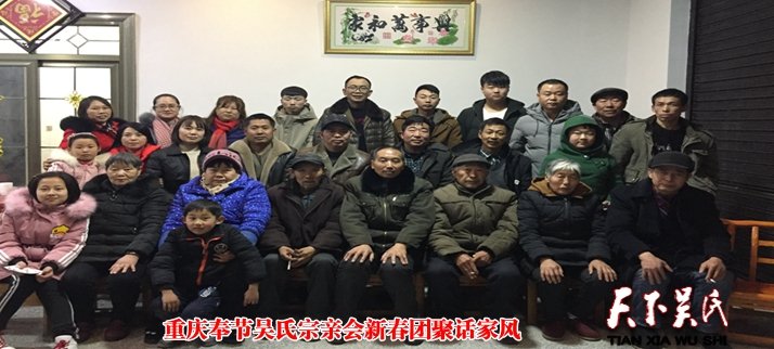 天下吳氏網(wǎng)訊(吳元中)2月13日,來自重慶市奉節(jié)縣境內(nèi)的吳應(yīng)舉公后裔歡聚一堂,共敘親情,大家一致認(rèn)為,如今的現(xiàn)代化社會,吳氏后人都是有文化的新一代,大家都是血濃于水的感情,更寄望后輩在激烈的社會競爭中,攜手共進,團結(jié)努力,互相幫助,互敬互愛。共創(chuàng)輝煌。