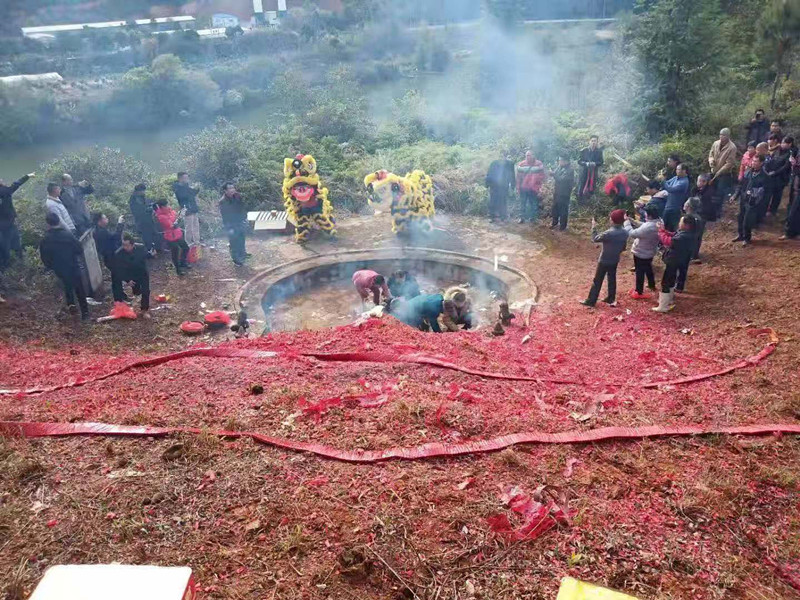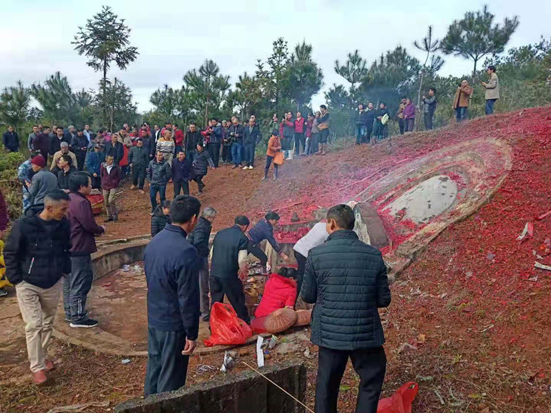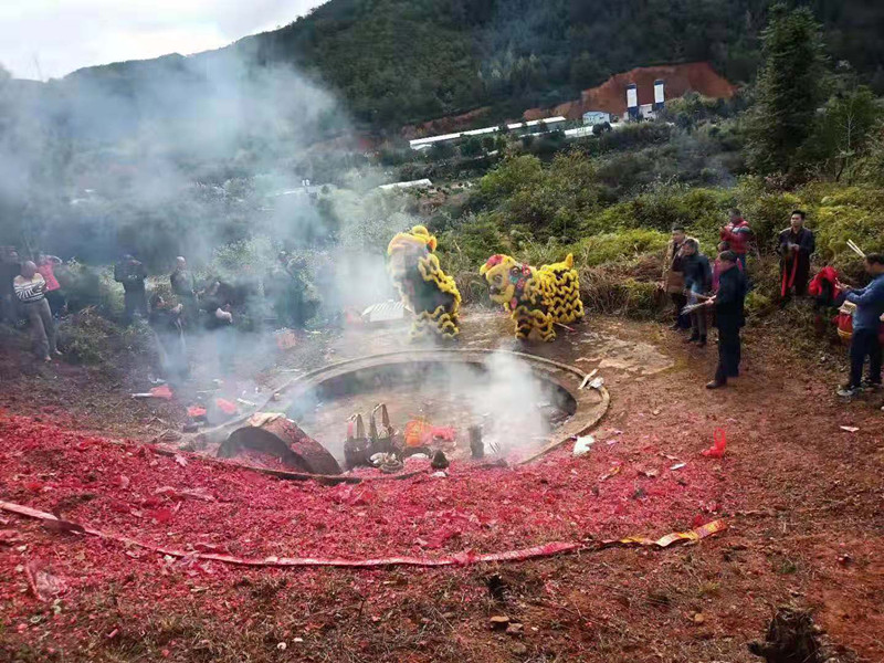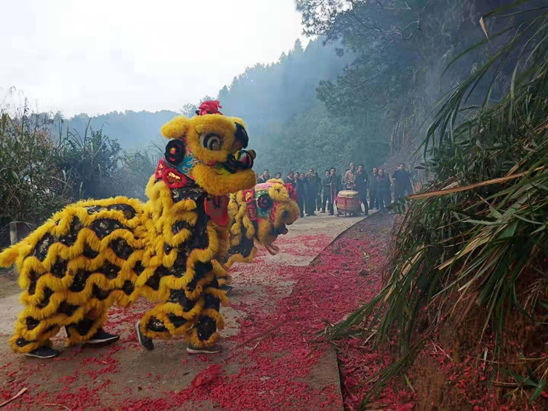 遠(yuǎn)道而來的廣東省始興宗親在墳前通過舞動(dòng)獅頭來表達(dá)自己的敬仰之心!