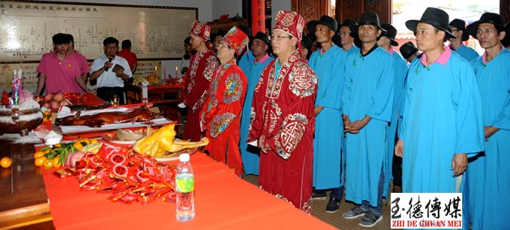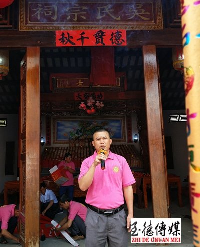 由吳君明擔(dān)任主持,由吳氏族里后裔子孫身穿傳統(tǒng)制服組成的祭祀大典擔(dān)任主祭司儀,各支系裔孫身穿統(tǒng)一服裝參加陪祭進場。