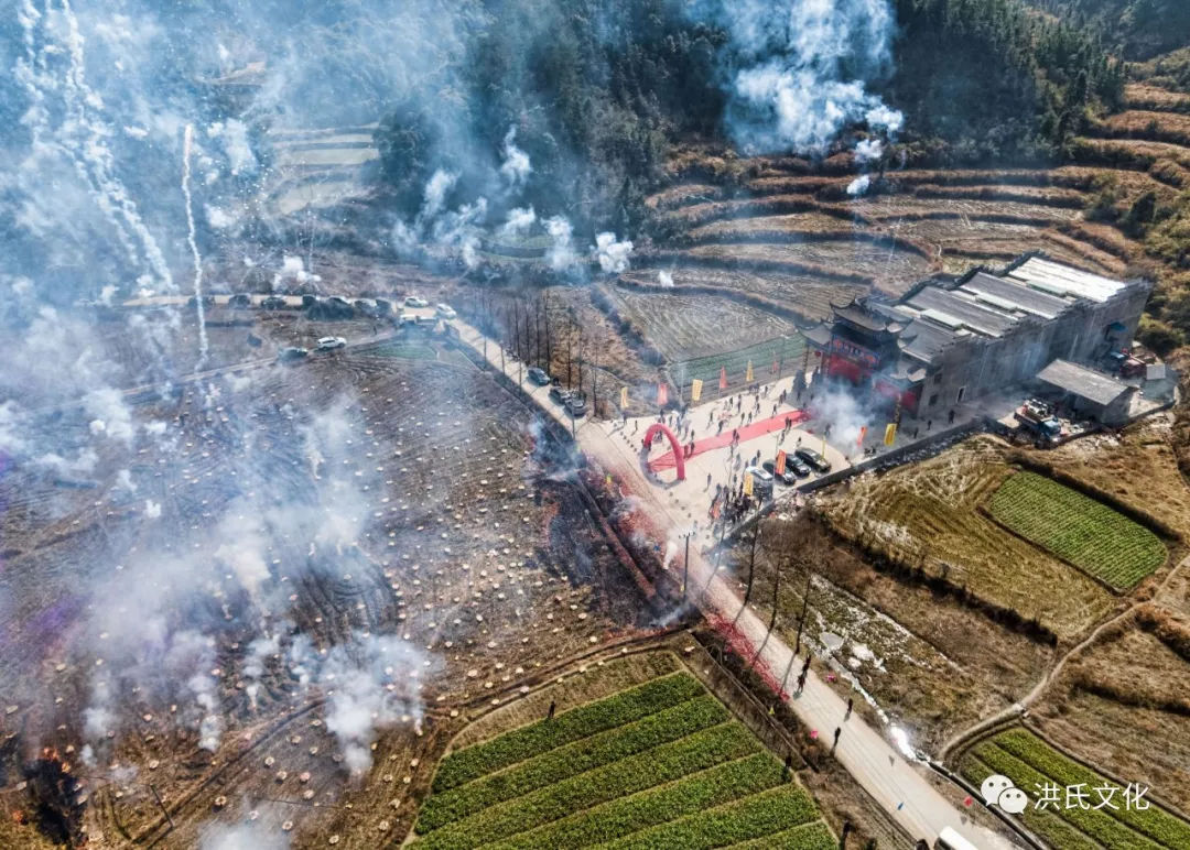 樹有根,水有源,宗祠以姓氏為線索,以宗親為紐帶,成為凝聚鄉(xiāng)情親情的神圣典當(dāng),洪家源洪氏宗祠落成,各支宗親,外莊叔侄,姑娘大姐等等紛紛祝賀,他們送來的爆竹煙花擺滿了祠堂前的稻田,一聲號令“放”,頓時炮仗響徹山谷,輕霧祥瑞吉慶。