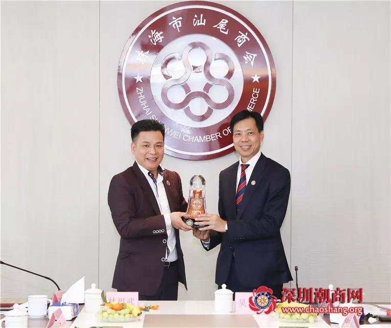 深圳市潮汕商會吳木棠會長代表商會向珠海市汕尾商會贈送紀(jì)念品