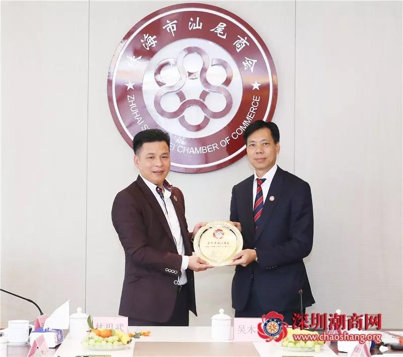 珠海市汕尾商會會長林祖武代表商會向深圳市潮汕商會贈送紀(jì)念品