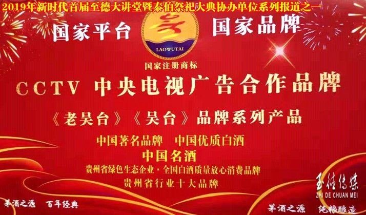 特別感謝貴州老吳公酒業(yè)有限公司為2019年新時(shí)代首屆至德大講堂暨泰伯祭祀大典贊助價(jià)值5.8萬元醬香優(yōu)質(zhì)白酒。