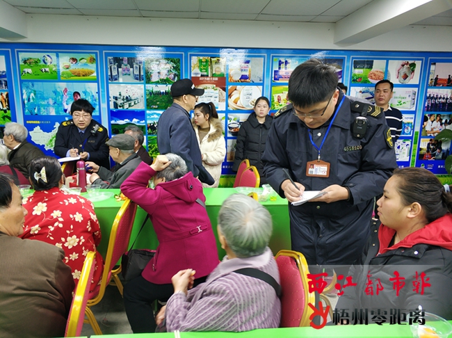 3月11日上午,梧州市市場(chǎng)監(jiān)管局聯(lián)合市公安局民警,到市內(nèi)數(shù)家疑似存在利用健康講座誘導(dǎo)老年人購(gòu)買(mǎi)保健品的商家展開(kāi)現(xiàn)場(chǎng)檢查。檢查中,工作人員同時(shí)登記了現(xiàn)場(chǎng)參會(huì)老人的人員信息,并介紹與保健食品相關(guān)的政策和法規(guī)。