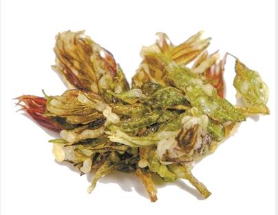 坊間吃香椿芽,不外乎剁碎了煎蛋或涼拌。黃進賢舍棄傳統(tǒng)做法,從日本料理中汲取靈感,用天婦羅的方法來烹制廣州的春蔬。
