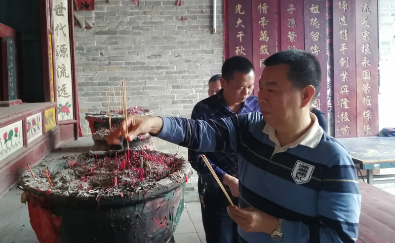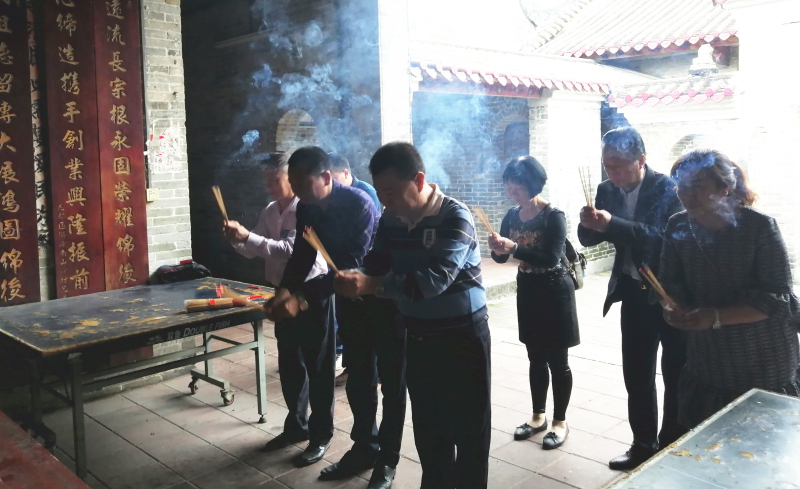 第二天上午,吳偉權(quán)宗長(zhǎng)還帶領(lǐng)深吳會(huì)的宗親們,來到位于從化區(qū)環(huán)城東路的江埔街禾倉(cāng)村,這里有一座遠(yuǎn)近聞名的官福吳公祠。禾倉(cāng)村吳氏始祖官福公,是兩百多年前從太平鎮(zhèn)遷居而來。官福吳氏祠歷史悠久,于2006年重新修繕。深吳會(huì)的宗親們?cè)谶@里仔細(xì)參觀了宗祠,聽取當(dāng)?shù)氐膮侨彰髯陂L(zhǎng)的詳細(xì)介紹,之后大家一起焚香祭拜了官福吳公祠的列祖列宗。