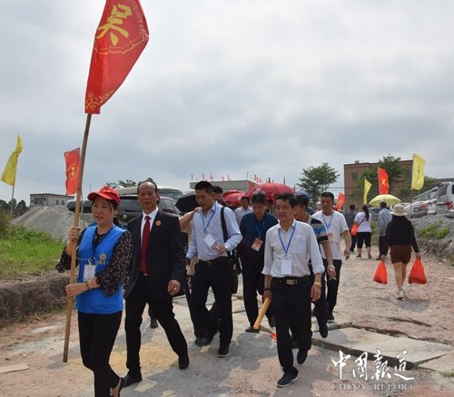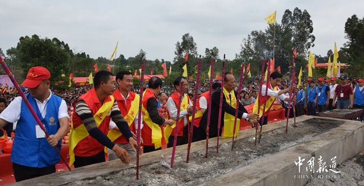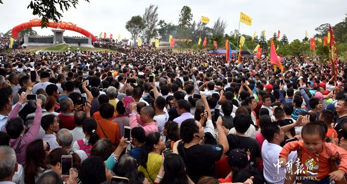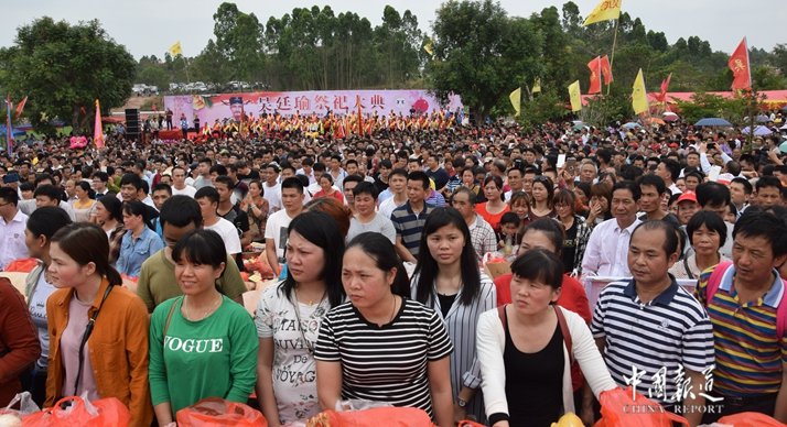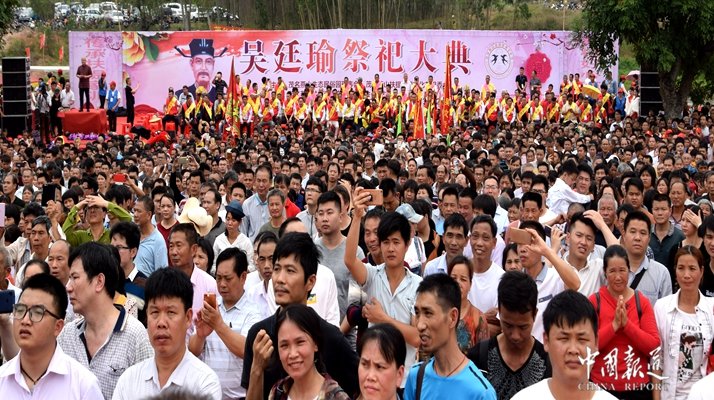 中國報道訊(吳蜀豐廣東茂名報道 )2019年3月22日(農(nóng)歷二月十六日),春和景明,國運昌隆,五萬多名吳氏宗親赴茂名燕山舉行祭祖活動,粵西泰伯文化研究會揭牌。是日,廣東茂名茂南區(qū)袂花鎮(zhèn)上村燕山生態(tài)公園,彩旗招展、人頭攢動,一個由民間自發(fā)的一年一度扶提崇德文化節(jié)隆重在此舉行,茂名市原常務(wù)副市長吳壽炎,中華吳氏宗親總會主席吳文富、副主席吳景暉、吳美福、吳學(xué)強、吳觀音生等等,參加粵西泰伯文化研究會掛牌儀式的各地吳氏代表吳多興、吳華建、吳昌祿、吳志標(biāo)、吳占標(biāo)、吳波、吳海濱、吳樂平、吳勇、吳文彬、吳承澤、吳統(tǒng)堅等出席活動,與來自四面八方近5萬多吳氏后裔一起,共同緬懷吳氏先祖吳廷瑜。