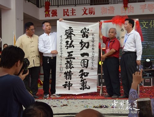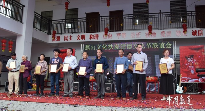 中午13:38,粵西泰伯文化研究會揭牌儀式在袂花鎮(zhèn)上村文化樓舉行?;浳魈┎幕芯繒L吳華龍就職發(fā)言、中華吳氏宗親總會會長吳文富,扶提崇德文化節(jié)執(zhí)委主任吳金瑞、組委會顧問吳觀海先后致辭。表彰本年度燕山吳氏“傳承扶提家訓(xùn),厚植好心文化”優(yōu)秀村莊,表彰本年度燕山吳氏優(yōu)秀學(xué)子,表彰本年度燕山吳氏杰出孝賢,表彰本年度燕山吳氏首席杰出孝賢及豐富多彩的文藝節(jié)目表演。