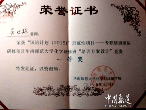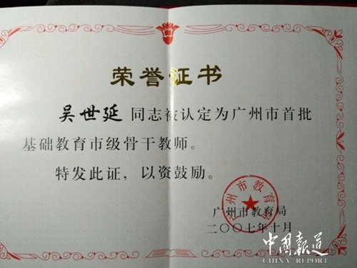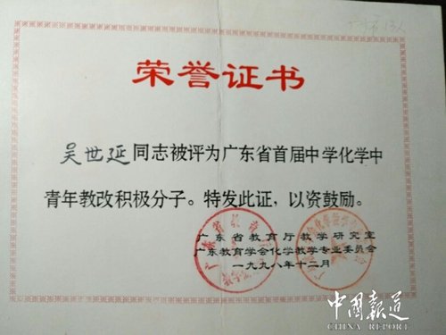 在廣州工作的二十二年間,先后多次受白云區(qū)政府嘉獎,被評為優(yōu)秀黨員、廣東省首屆中青年化學教師教學教研積極分子,白云區(qū)學科特色教師,白云區(qū)優(yōu)秀教師,廣州市優(yōu)秀教師,廣州市首批骨干教師等榮譽稱號。