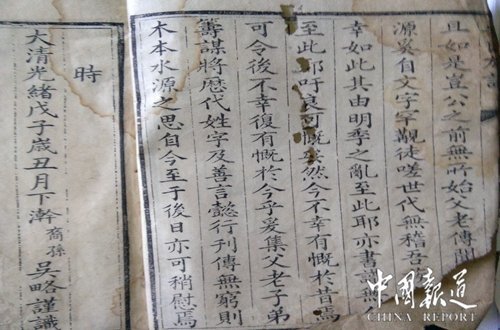 “因《吳氏族譜》僅記載有10代世祖,即“萬、自、任、洪、曰,永、登、文、學(xué)、昌”。本次修譜從第11代至15代即“遵、居、陶、密、省”,其余16至20代“直、慎、甚、云、襄”后輩們只能列排族譜中。屆時他們或許進(jìn)行第三次續(xù)譜”接力,吳蜀豐說。