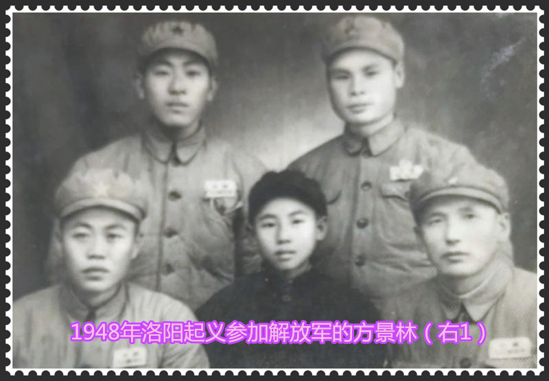 1947年夏因前線戰(zhàn)事吃緊,國防大學抽調部分教員到基層去任戰(zhàn)地指揮官,他被調到青年遠征軍(206師)任上校團長。1948年3月他在河南洛陽前線率部起義,入編陳庚兵團的318軍。司令員陳庚和政委謝富治接見他們起義部隊,并在前線給方景林團長交代任務。要他們去陣前喊話,宣傳我軍政策,策反敵軍。并對已投誠、被俘人員進行政治思想工作,安撫他們直接參加中國人民解放軍,為人民立新功。起義后于當年由組織派往湖南長沙做地下工作,策反國民黨第一兵團陳明仁起義。陳明仁兵團于1949年8月4日宣布起義,他完滿地完成他所負責的那部份的策反任務。