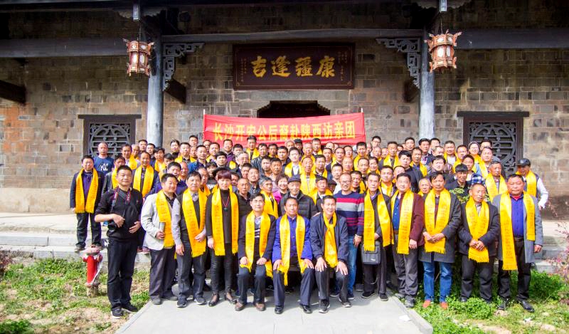 湖南長沙訪親團(tuán)成員在吳家花屋門前留影。