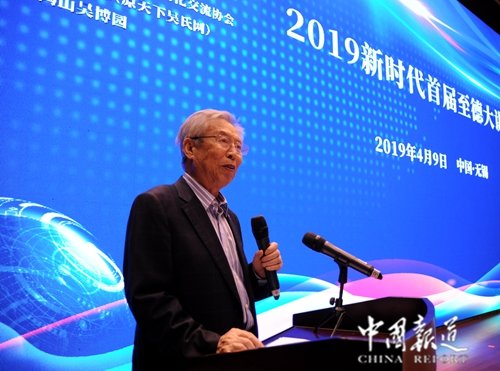 民政部至德企業(yè)文化發(fā)展中心主任吳錫在致辭中介紹信說(shuō),三千多年前,泰伯為了成全父親傳位三弟,便與二弟,奔荊蠻地區(qū),入鄉(xiāng)隨俗,“紋身斷發(fā)”,將北方的先進(jìn)農(nóng)業(yè)技術(shù)傳授給當(dāng)?shù)鼐用?,使?dāng)?shù)氐慕?jīng)濟(jì)文化逐漸發(fā)展起來(lái),并建立了江南地區(qū)最早的氏族家業(yè)。由于泰伯“讓一國(guó)而興二邦”的“三讓”高風(fēng),孔夫子非常贊嘗說(shuō):“泰伯,其可謂至德者已矣,三以天下讓?zhuān)癫坏枚Q(chēng)焉”的“至德” 圣人 ,開(kāi)啟中華文明新紀(jì)元,開(kāi)拓江南,造福黎民,肇基富裕文明錦繡江南!促進(jìn)黃河文明、長(zhǎng)江文明交流融合!泰伯被孔子尊稱(chēng)至德,至德精神傳承數(shù)千年,成為中華優(yōu)良傳統(tǒng)文化重要組成部分。至德行善是企業(yè)文化發(fā)展追求的永恒價(jià)值,今天,傳承泰伯家風(fēng),弘揚(yáng)至德精神,各位家人應(yīng)當(dāng)相互尊重關(guān)愛(ài),求大同存小異,誠(chéng)信正能,團(tuán)結(jié)互助,合作共贏,通過(guò)文化、經(jīng)濟(jì)、公益等方面全面發(fā)展,推動(dòng)和促進(jìn)家族興盛,國(guó)家強(qiáng)大!