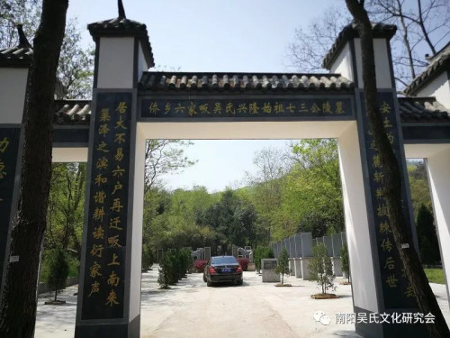 4月8日上午,吳雷等人在吳瑞賢執(zhí)行院長、吳遠鋒理事的陪同下,驅車來到肥東縣,拜謁了位于巢湖之濱的肥東縣六家畈鎮(zhèn)吳氏祠堂。據六家畈鎮(zhèn)吳氏宗親會會長吳榮智介紹:六家畈鎮(zhèn)吳氏宗祠始建于明萬歷二十二年(1594年),光緒六年(1880年)擴建,1914年毀于火災,1918年復建,“文革”時又被拆掉。2006年當?shù)貐鞘献谟H決定重建。用3年時間籌款60多萬元,在老祠堂原址新建祠堂樓及三進一院,于2010年10月竣工。在重建祠堂的同時又整修了肥東縣文物保護單位、六家畈吳氏始遷祖吳七三墓園。吳雷一行在吳瑞賢、吳遠鋒、吳榮智等人的陪同下參觀了吳氏宗祠,恭閱了族譜,拜謁了吳七三公墓園。