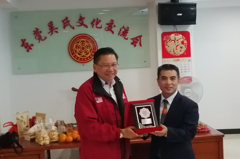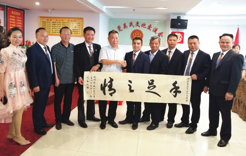 2019年4月12日,第五屆世界吳氏宗親總會吳啟熊宗長夫婦、吳克成宗長夫婦、吳德祥宗長、吳錦豪宗長、吳道良宗長、吳克進(jìn)宗長等一行八人,來到位于深圳龍華海韻大廈19樓的深吳會所,向吳祖三公像焚香鞠躬,祭拜吳氏先祖。之后,世吳宗親總會向深吳會贈送了禮品---精致的吳氏會徽。在深吳會所,來自馬來西亞的世吳宗親與深吳宗親在一起愉快的交談,暢談兩地宗親文化活動的發(fā)展。