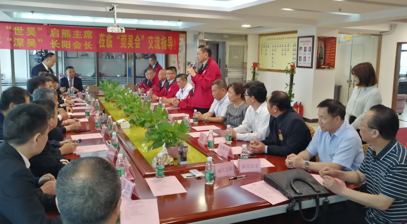 宗親見面,份外親切。世吳宗親與深吳宗親參觀了莞吳會所,祭拜了三公像。之后世吳、莞吳、深吳三會宗親舉行了座談會。