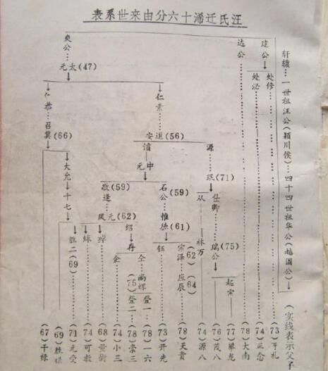 湖北黃岡、鄂州、武漢汪氏,潁川候后。由徽州75世遷來,“尚輝公生于元初,妻張氏生字四,登一、興一、訓(xùn)一、受一”此為“六祖墳”之“榮華富貴受托”一脈。其中:“貴戶”輩分是“ 登景省元?jiǎng)?子永大廷一 繼應(yīng)世承德 希輔維時(shí)思 遠(yuǎn)紹序從正 手典在克敬”