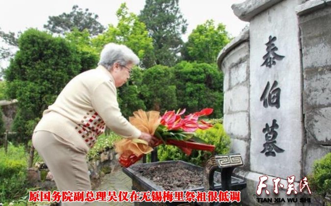 吳儀在退休之后以一個(gè)吳家女兒的身份去祖地泰伯墓祭拜泰伯公,其畫面肅穆、莊重,其身影之凝重、之虔誠(chéng),場(chǎng)面簡(jiǎn)樸,沒有跟隨和前簇后擁的人員,更沒有姿意突出烘托的畫面,一束鮮花,表達(dá)了現(xiàn)代文明祭祖的新典范。