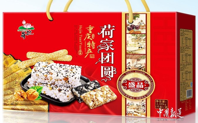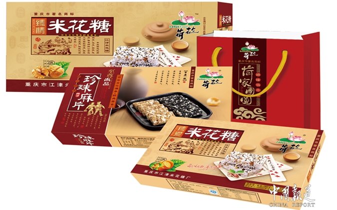 荷花米花糖:采用優(yōu)質(zhì)糯米深加工而成,配以極富營(yíng)養(yǎng)價(jià)值的核桃、芝麻、花生、白砂糖和冰糖,以及獨(dú)特工藝自制的麥芽糖。產(chǎn)品潔白酥脆,香甜化渣,甜而不膩,可直接食用,也可泡牛奶或開水吃,米?;ㄒ娝粫?huì)變形成粥狀。老少皆宜,家居的甜品首選,旅游的黃金搭檔。后來荷花人順應(yīng)家鄉(xiāng)人喜食辣椒和花椒的習(xí)慣,開發(fā)了早茶味、麻辣味、椒鹽味米花糖,以饗巴渝食客,深受大眾喜愛。荷花珍珠芝麻片:特別選料,特別配方,特別工藝,特別制作,有突出的芝麻清香,酥脆爽口,色、香、味、形,彰顯出珍珠般的高貴品質(zhì)。荷花怪味胡豆:以其特有的傳統(tǒng)工藝,將麻、辣、甜、咸、鮮、酥、脆、香等多種滋味融為一體,堪稱巴渝地方傳統(tǒng)食品一絕。荷花蛋苕酥:是以鮮雞蛋和鮮紅薯為主材,輔以營(yíng)養(yǎng)豐富的糯米、棕櫚油、麥芽糖和脫皮芝麻仁深加工而成的一款健康零食。因其色澤自然,口味原始,酥脆化渣,粗纖維含量豐富,每一塊重量適中,食用方便,是現(xiàn)代辦公零食和旅游攜帶的尚品。荷花芝麻桿:是純粹的麥芽糖為材料,純手工制作而成的。色澤微黃,中空外直,桿身均勻,外衣裹以脫皮白芝麻,味道醇正,嚼勁十足,營(yíng)養(yǎng)均衡。荷花鳳凰蛋卷:手工制作,無添加劑,蛋香濃郁。