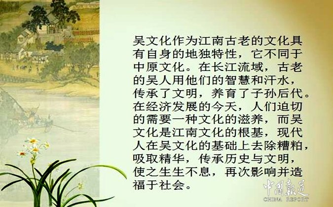 雨果說:“注入人類家園的每一條細(xì)流都不再是自然之物,它的每一粒水珠都折射著文明之光。”吳文化是一盞千古不滅的文化明燈,是中華民族傳統(tǒng)文化最寶貴的精神財(cái)富和燦爛的文化遺產(chǎn)。在未來中華文明進(jìn)程中必將綻放更燦爛的文化光芒!