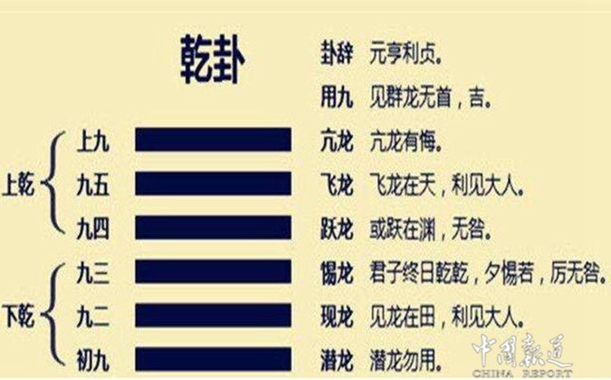 另一種說法認(rèn)為“九五”一詞源于《易經(jīng)》。據(jù)說《易經(jīng)》為周文王所演,因此也稱為《周易》?!吨芤住?4卦的首卦為乾卦,乾者象征天,因此也就成了代表帝王的卦象。乾卦由6條陽爻組成,是極陽、極盛之相。6個(gè)陽爻,從下向上數(shù)就是:初九、九二、九三、九四、九五、上九。其中第五爻稱為九五。九代表此爻為陽爻,五為第五爻之意。九五是乾卦中最好的爻,乾卦是64卦的第一卦,因此九五也就是64卦384爻的第一爻了,就成了帝王之相。在此有人會問:為什么放著比“九五”還要高的“上九”不用,皇帝卻只占定“九五”呢?這是因?yàn)?ldquo;上九”的位置就是“亢龍”,過猶不及,結(jié)果只能是“亢龍有悔”。這往往就意味著傾、覆、亡、失、敗、退等不吉利的走向,因而中國古代皇帝就樂意呆在“九五”的位置上了。同時(shí),從出處來看,《易經(jīng)*乾卦第一》的卦辭有:“九五,飛龍?jiān)谔?,利見大?rdquo;、“飛龍?jiān)谔?,上治?rdquo;、“飛龍?jiān)谔?,乃位乎天?rdquo;,這些卦辭,顯然都是祥瑞之兆。