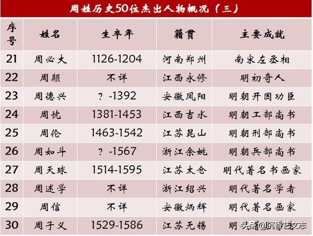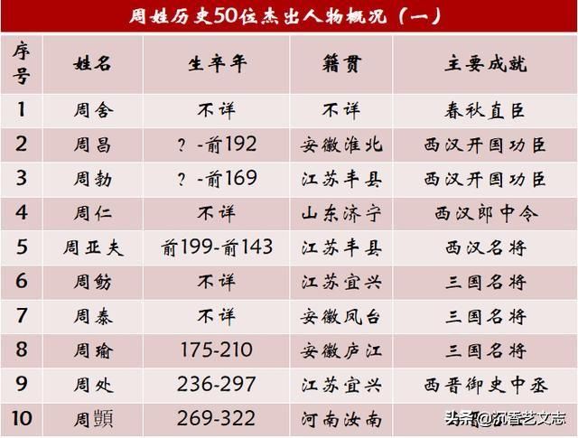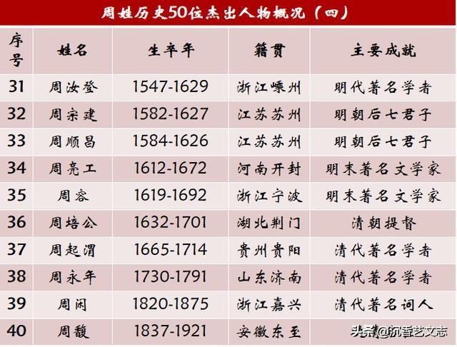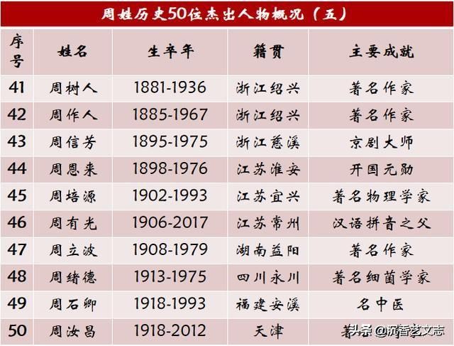 從周姓歷史名人來看,唐朝以前多出名將,宋朝以后多出文人。宋朝之后,江浙地區(qū)成為周姓人才的集中地,詩書傳家的典范,現(xiàn)當代也是名家輩出。
