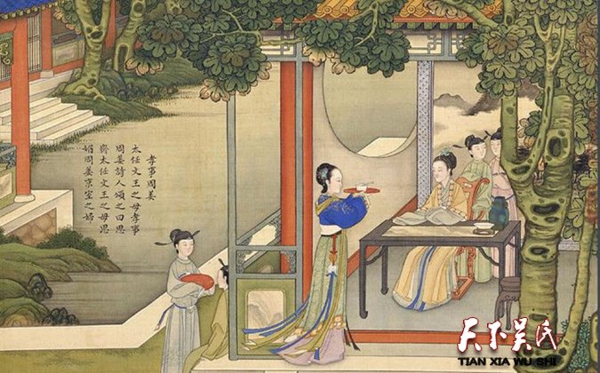 次說(shuō)太妊吧。太妊是太姜兒媳,季歷之妻。生性端正嚴(yán)謹(jǐn)、莊重誠(chéng)敬,凡事合乎仁義道德才會(huì)去做。尤其是太任懷孕之時(shí),首創(chuàng)胎教,“目不視惡色,耳不聽(tīng)淫聲,口不出傲言”,躺則平穩(wěn)安靜,坐則端莊穩(wěn)妥,站則挺胸昂首,行則緩步慢走,心態(tài)淡定,神色安詳,所以文王生下來(lái)就一表人才,聰明異常,教一知十。