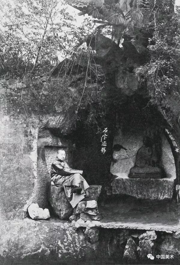 吳昌碩在缶龕旁留影
