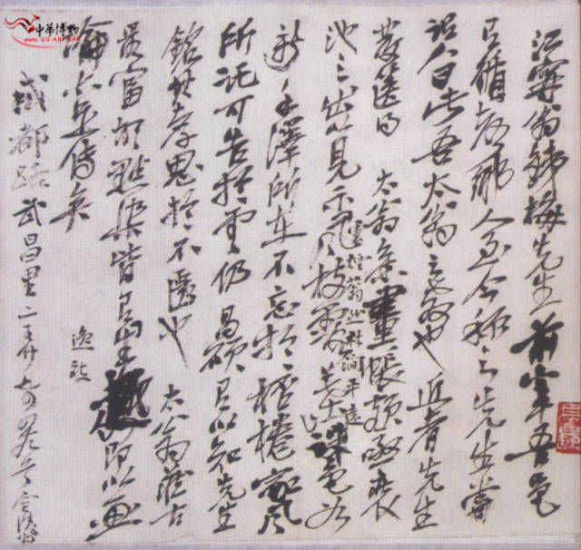 此手稿既沒書寫時(shí)間,也無鈐蓋印章,但觀其書法,其行書風(fēng)格初具雛形,只是字里行間結(jié)構(gòu)布局稍顯凌亂,應(yīng)為吳昌碩中年前期之作。四十四至五十四歲這段時(shí)間吳昌碩寓居上海,與翁鐵梅互有往來,此信稿大概為當(dāng)時(shí)之作。