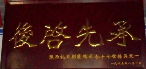 1945年8月1日,吳鳳翔在吳氏祠堂親自題寫“承先啟后”匾額,落款為“豫西抗日剿匪軍總司令十七世孫吳秉一”。如今,這塊匾額依然懸掛在吳氏祠堂的正堂內(nèi),熠熠生輝。