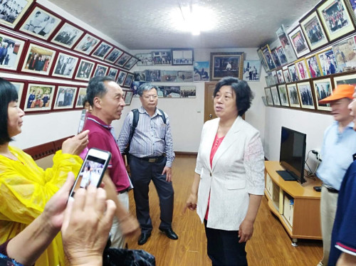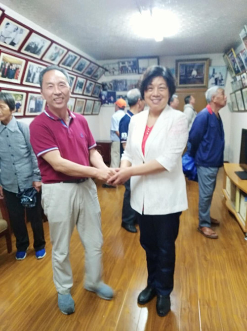 瞻祠祭祖結(jié)束后,義烏宗親參觀訪問華西村。延陵季子宗親會副會長吳鳳英對此作了周密安排并撥冗與他們親切交談。